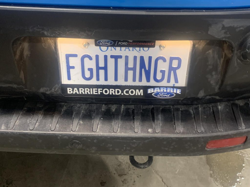 The licence plate on the back of the Barrie Food Bank’s new refrigerated van, Tuesday, April 7, 2026. (Image – Barrie 360)