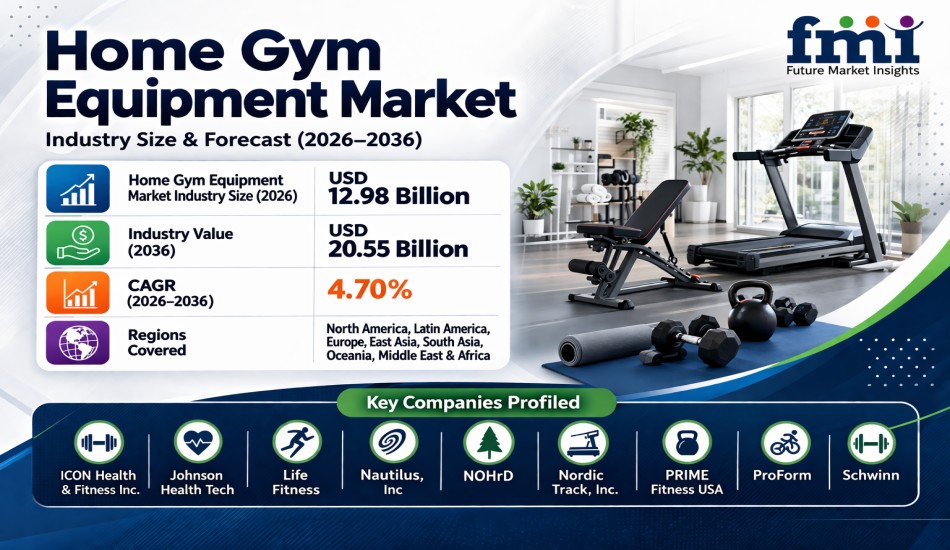 NEWARK, DE / ACCESS Newswire / April 8, 2026 / The global home gym equipment market, as analyzed by Future Market Insights (FMI), was valued at USD 12.40 billion in 2025 and is projected to reach USD 12.98 billion in 2026. The market is expected to expand steadily to USD 20.55 billion by 2036, registering a CAGR of 4.70% over the forecast period. According to FMI, the total incremental opportunity between 2026 and 2036 is estimated at USD 7.57 billion, driven by growing consumer preference for flexible, home-based workouts, increased adoption of smart connected equipment, and evolving global supply chain dynamics.