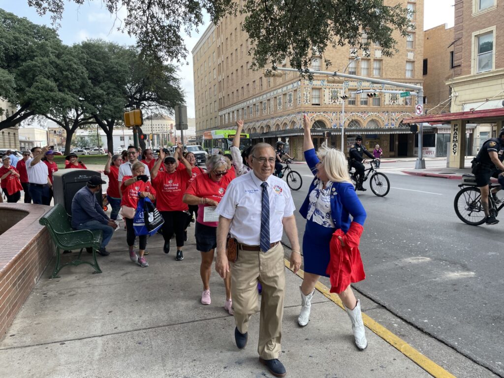 Mayor Dr. Victor Trevino leads residents during a mayoral walk in 2024.