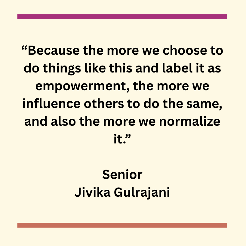 “It’s not all women’s fault — a lot of it is the fault of the male gaze, which is perpetuated by men,” Gulrajani said. “But I think women have more agency than we think, and we have more choice than we think in terms of pandering to that. Because the more we choose to do things like this and label it as empowerment, the more we influence others to do the same, and also the more we normalize it.”