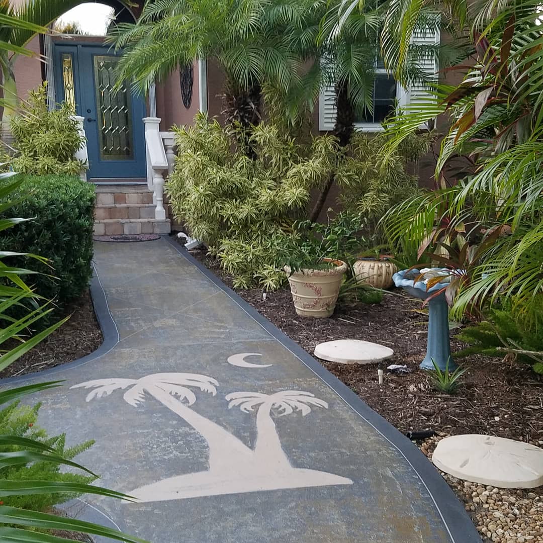 Adding unique curb appeal with stenciled SpreadStone Decorative Stone Coating makes a first-class appearance for this Florida home.