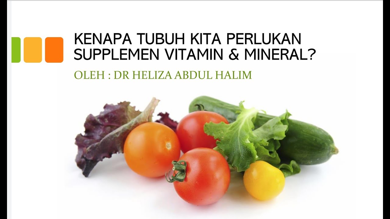 Penerangan berkenaan KEPERLUAN SUPPLEMEN (SUPPLEMENT) VITAMIN DAN MINERAL dalam bahasa yang mudah difahami. Disampaikan oleh Dr Heliza Abdul Halim, seorang doctor perubatan. Harap video ini akan dapat memberi manfaat kepada penonton semua. Untuk maklumat lanjut, sila hubungi: