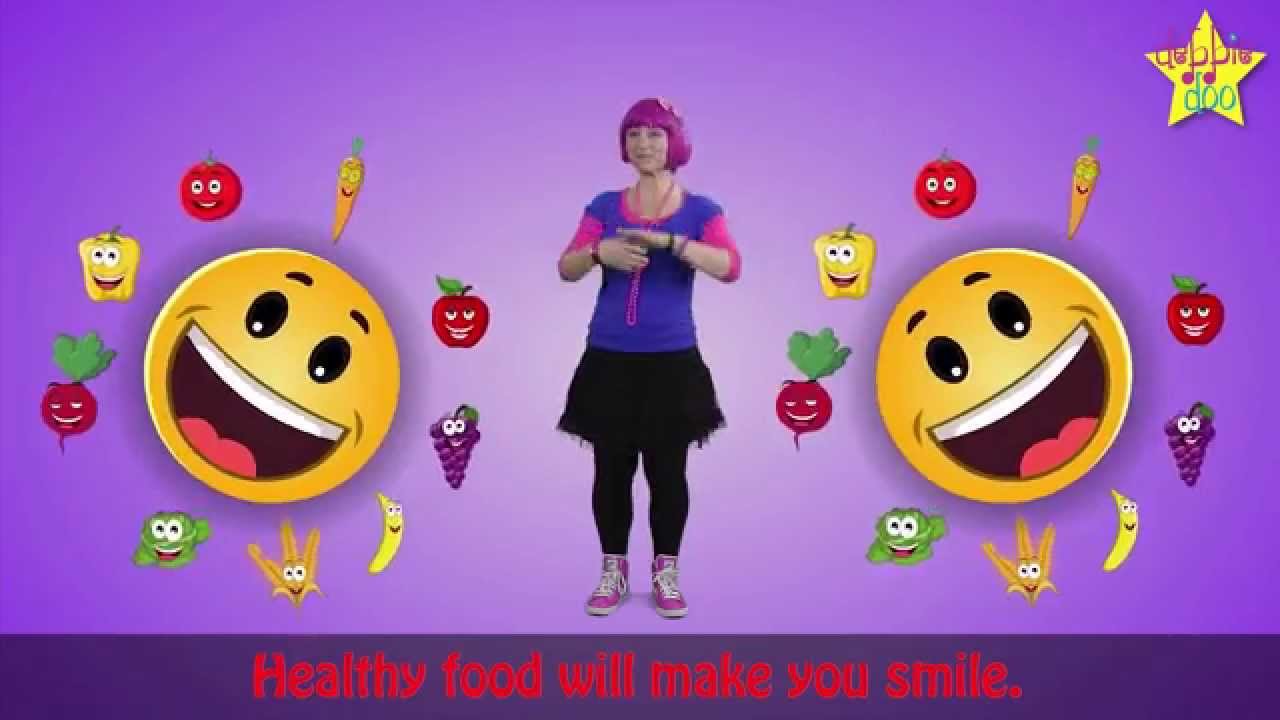 Watch as Debbie Doo performs easy to follow actions with cute animated characters to the Healthy Food Song. The junk foods are a bit shady but the health foods are happy, reinforcing the message that healthy food is always the best choice! Fruit, veggies, chocolate,chips and cake. It’s all here with the clear message that every food can be enjoyed in moderation.