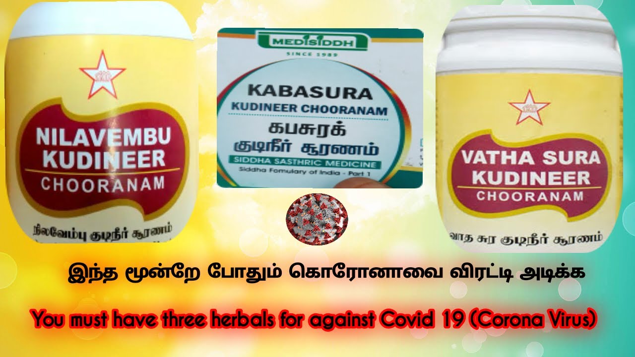 Kabasura Kudineer, Vadha Sura Kudineer and Nilavembu suranam is a well known Siddha medicine that consists of each having 15 herbal ingredients, each of them having unique characteristic features of its own. But this Churnam is extensively aimed for boosting the lungs, improving respiratory mechanism and treating infectious conditions like cough, cold, fever and other respiratory infections. This churanam boost your immune system against Covid-19. This Churnam became quite well-known during the times of flu owing to its therapeutic and curative qualities.
