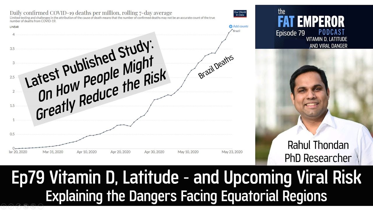Ep79 reveals the more nuanced interactions between Vitamin D, Latitude, UV and the impacts of Covid19 on different countries around the globe. Note that there’s more to the sun than Vitamin D – there’s Nitric Oxide and more too!