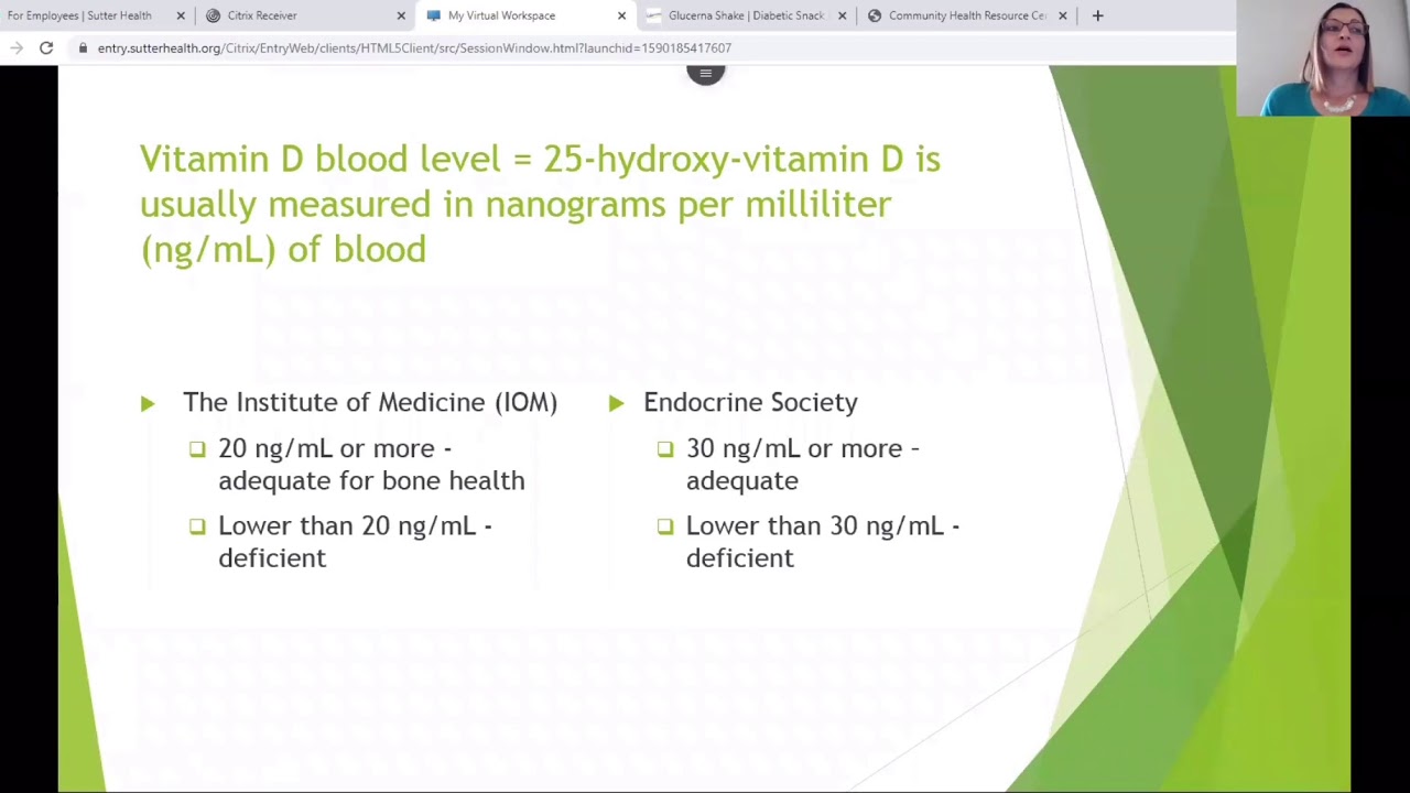 Elena Zidaru, MA, RD has been providing nutrition counseling at Community Health Resource Center (CHRC) for over ten years and in this video she shares her expert knowledge on vitamin D, the sunshine vitamin. Elena gives a brief overview of how vitamin is synthesized and the function it serves in our bodies. Elena also talks about research available that describes how vitamin D deficiency can increase risk of diseases from cancer to depression.