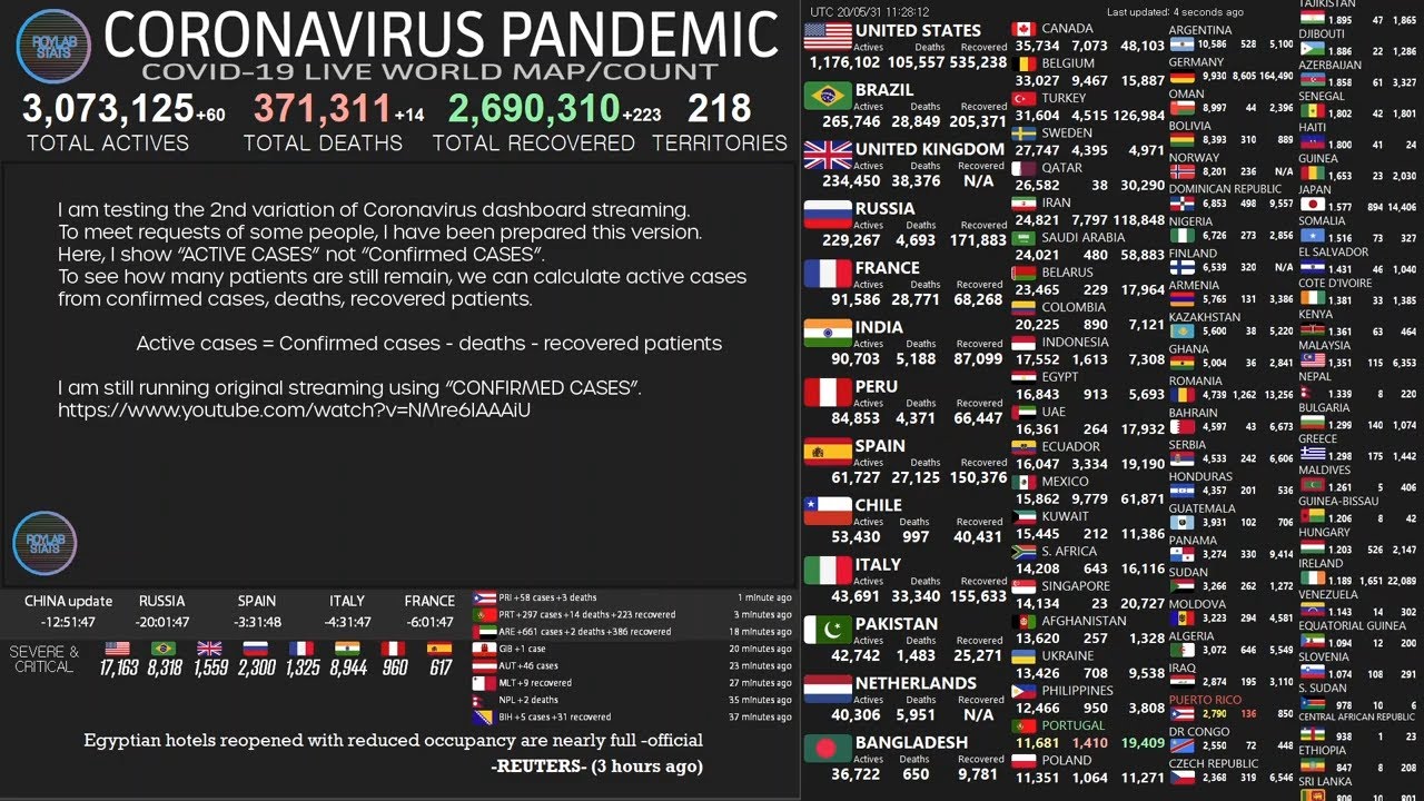 Coronavirus Live Streaming: Breaking news, world Map and live counter on Active Cases