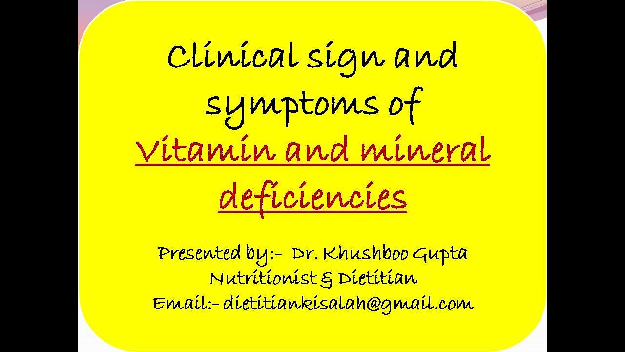 vitamins and minerals play crucial role in development of healthy living. Deficiency of this important components of diet can be fatal if not treat immediately. Early knowledge of clinical symptoms may be helpful in treatment and cure.