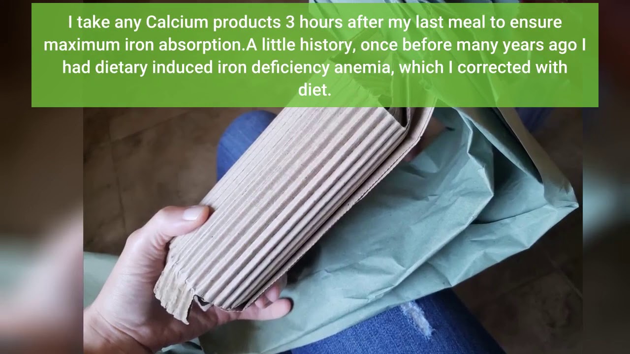 I take any Calcium products 3 hours after my last meal to ensure maximum iron absorption.A little history, once before many years ago I had dietary induced iron deficiency anemia, which I corrected with diet.