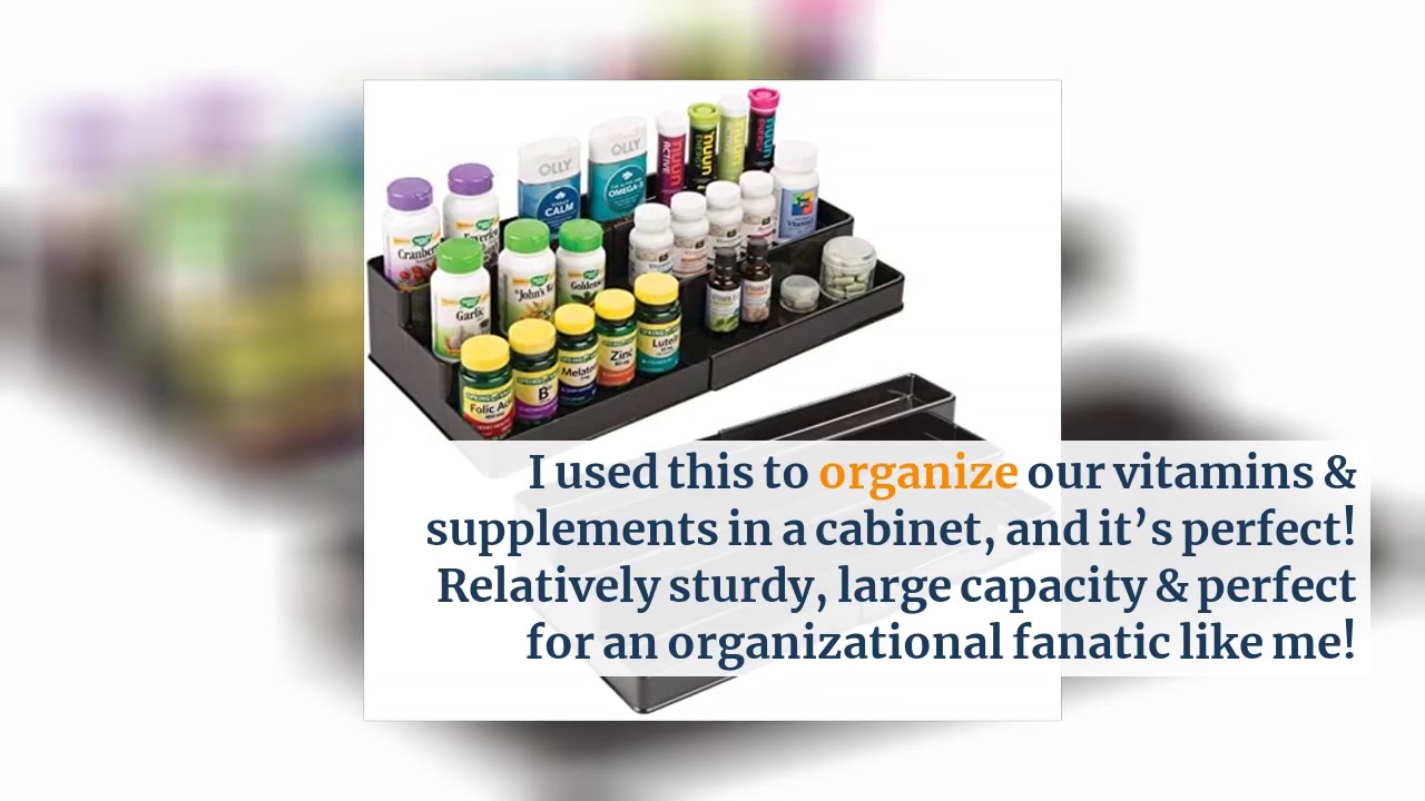– mDesign Adjustable, Expandable Plastic Vitamin Rack Storage Organizer Tray for Bathroom Vanity, Countertop, Cabinet – 3 Shelves – Holds Supplements, Medication – Black