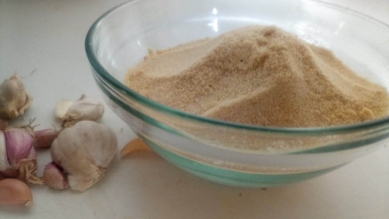 Garlic powder is made at home from fresh garlic cloves. Garlic powder is used as a seasoning for many recipes such as bread, steaks, chicken, shrimps etc. Garlic is beneficial to our health, it helps fight cold or flu.