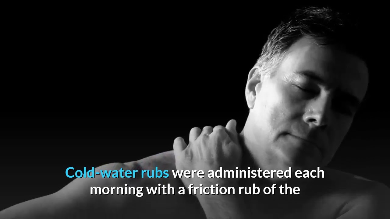 A three-quarter pack was prescribed to be worn for two hours, twice each week. Cold-water rubs were administered each morning with a friction rub of the entire body (the affected area to be rubbed gently to avoid unnecessary pain). Affusions of the knees and the affected area were ordered. The water pressure upon the affected point was determined by the condition of the patient, the rule being to avoid excess pain at all times.