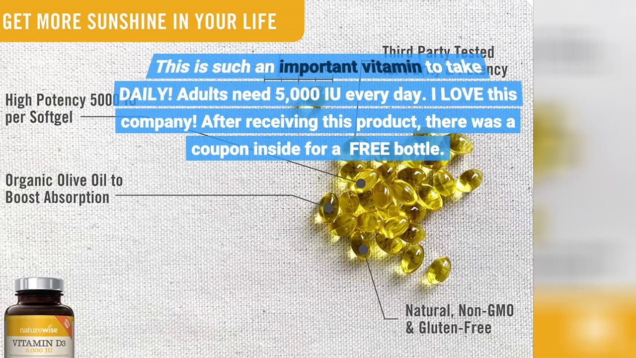 – NatureWise Vitamin D3 5,000 IU for Healthy Muscle Function, Bone Health, & Immune Support Non-GMO in Cold-Pressed Organic Olive Oil & Gluten-Free (Packaging May Vary) [1Year Supply – 360 Count]