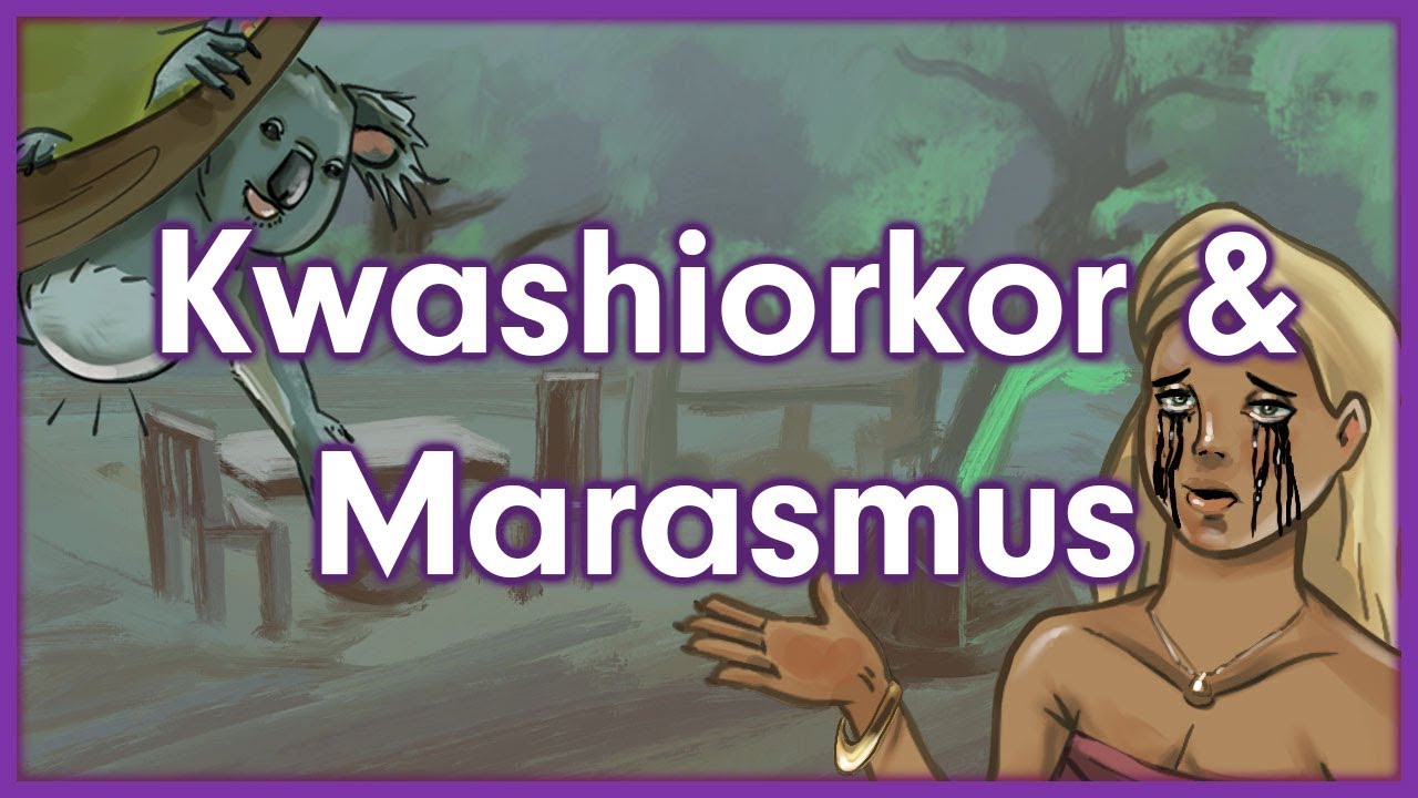 Kwashiorkor and Marasmus are diseases of severe malnutrition. Kwashiorkor is caused by protein deficiency, and symptoms include swelling of the belly secondary to fluid leakage (edema), skin lesions, fatty liver change, and anemia. Marasmus is caused by a deficiency of all nutrients, or a total caloric deficiency. The classic clinical finding in marasmus is muscle wasting. The differences between Kwashiorkor vs. Marasmus come up often on the USMLE Step 1, so this video provides a simple mnemonic to remember both diseases.