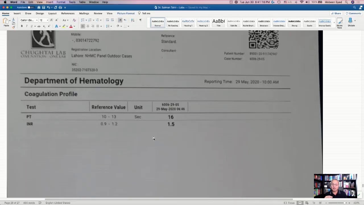 Continuing to discuss Dr. Salman Tahir’s case (RIP.) Today we will discuss the labs.