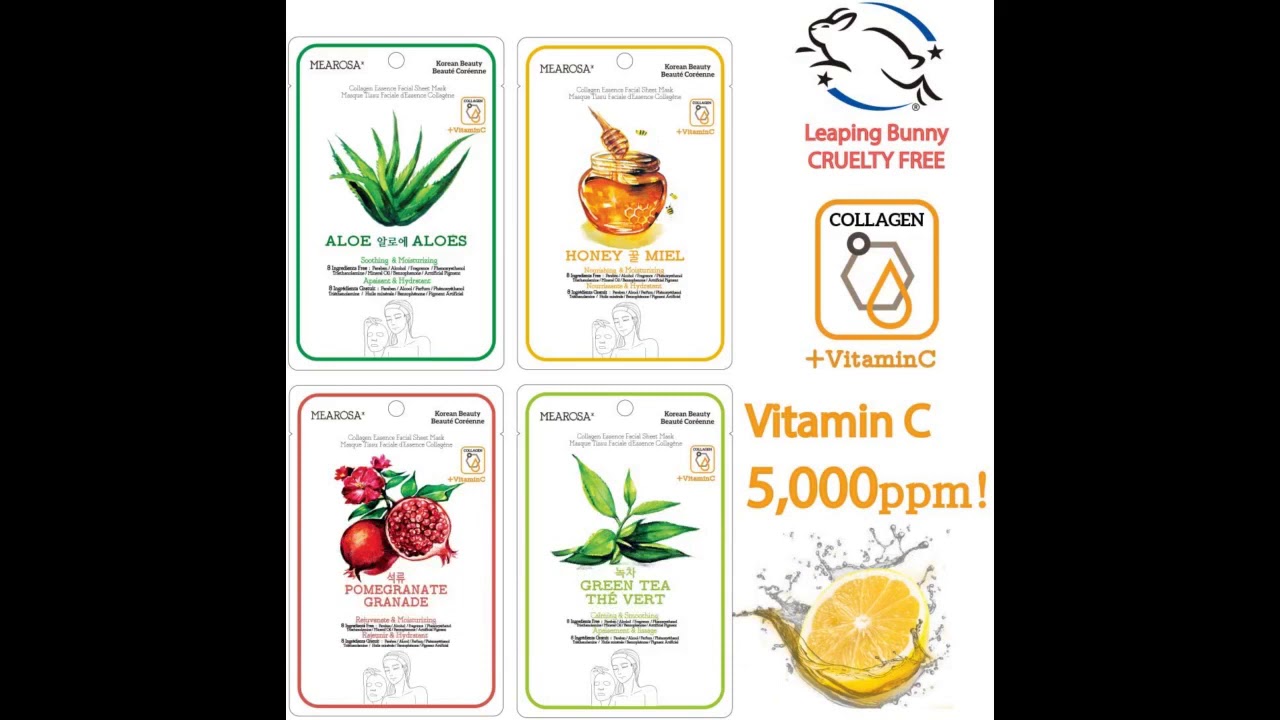 MEAROSA* NEW Facial sheet mask (8 sheets) Premium Quality.(We update our ingredients, Don’t confuse ingredients!)CRUELTY FREE Contains lots of Natural Vitamin C Serum Collagen Essence( 25ml/0.85floz ), Repair Sun Damaged Skin! GOOD to apply our sheet mask DAILY for SENSITIVE SKIN. (STORE the sheet masks in the refrigerator!) LESS STICKY and the Moisture Last for a Long Day. (Not Oily Serum) MADE IN KOREA 8 Ingredients FREE! FREE ALCOHOL / FREE FRAGRANCE / FREE PHENOXYETHANOL / FREE PARABEN / FREE BENZOPHENONE / FREE ARTIFICIAL PIGMENT / FREE MINERAL OIL / FREE TRIETHANOLAMINE100% MONEY-BACK GUARANTEE