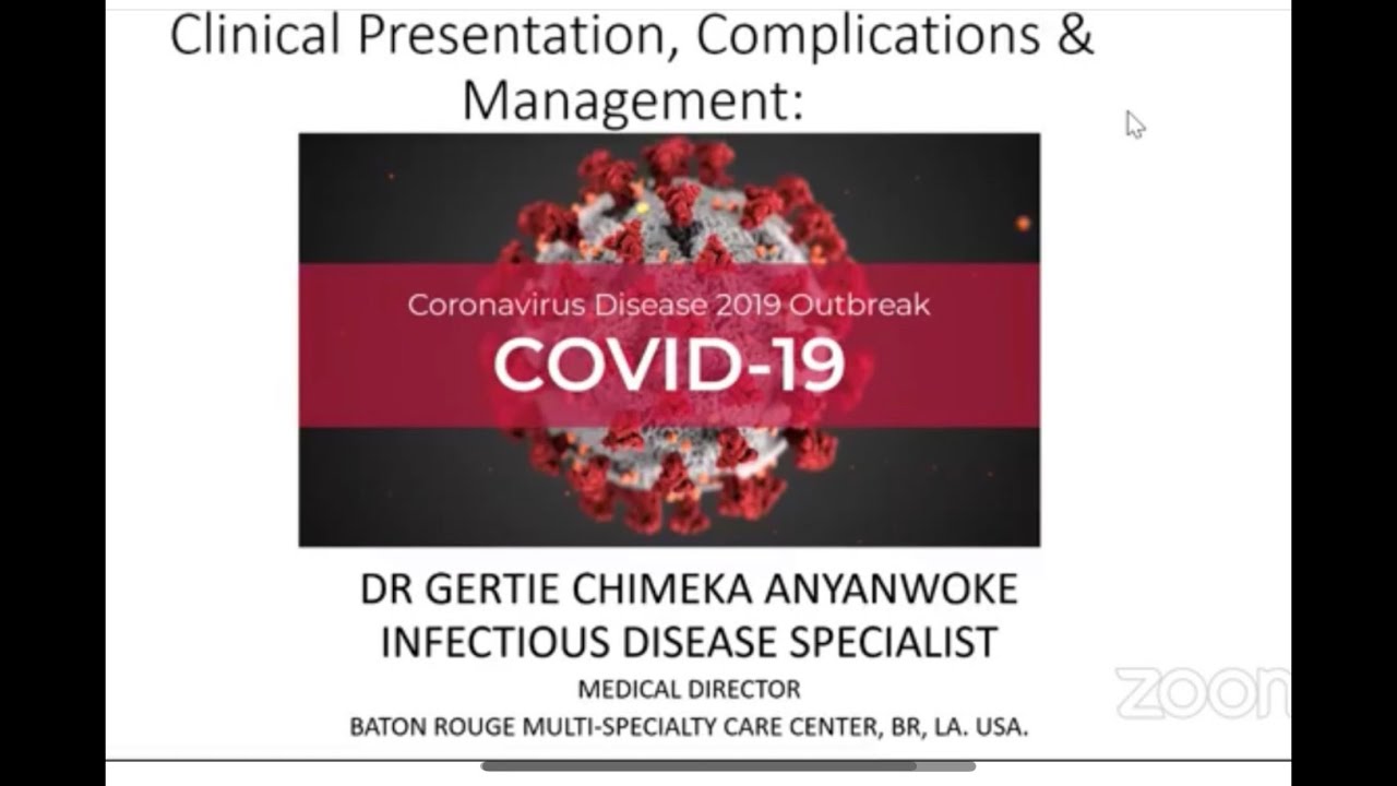 COVID19 UPDATE CLINICAL PRESENTATION, COMPLICATIONS & MANAGEMENT OF COVID19, Dr Gertie Chimeka Anyanwoke, Infectious Disease Specialist.