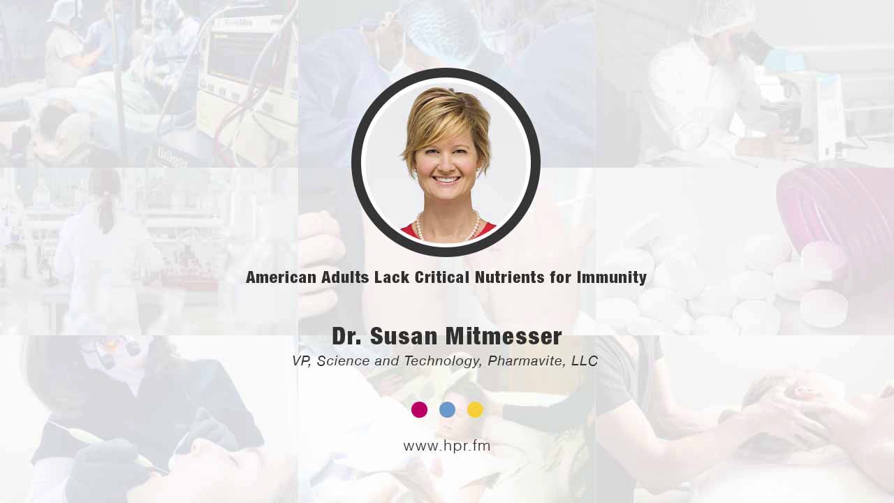 Returning guest, Dr. Susan Mitmesser, VP of Science and Technology at Pharmavite, makers of Nature Made vitamins and supplements, discusses a review paper by Pharmavite that was recently published in “Nutrients” where the correlation between nutrient inadequacies, immune function, and weakened immune response is shown in American adults.