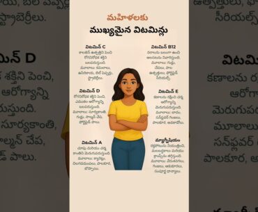 ఆరోగ్యంగా, ఉత్సాహంగా ఉండటానికి ఈ విటమిన్లు చాలా అవసరం! 🌸 చర్మ కాంతి, ఎముకల బలం, హార్మోన్ల సమతౌల్యం కోసం ప్రతి మహిళా ఈ విటమిన్లను తప్పక ఆహారంలో చేర్చాలి. 🥗☀️ #మహిళఆరోగ్యం #VitaminsForWomen #ఆరోగ్యచిట్కాలు #NutritionTips #Shorts