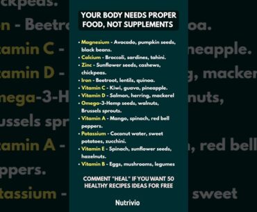 Most people rely on supplements without realizing that real foods already provide everything your body needs! 🌿 In this video, you’ll discover natural, everyday food sources for vital nutrients — vitamins, minerals, and healthy fats — that support your energy,…