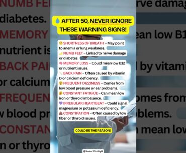 After age 50, your body sends subtle warning signs that shouldn’t be ignored. Shortness of breath may indicate anemia or lung weakness, while numb feet often point to nerve damage or diabetes. Memory loss could mean low vitamin B12 or…